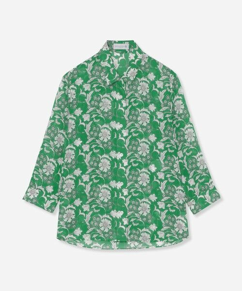 プリントを活かしたベーシックなシャツブラウスです。ゆったりとした身幅と8分袖の涼しげなデザインで暑い時季にも軽快に着用頂けます。裾をタックインしたきれいめスタイリングも、前を開けて羽織りにしたカジュアルスタイリングもどちらもおすすめです。