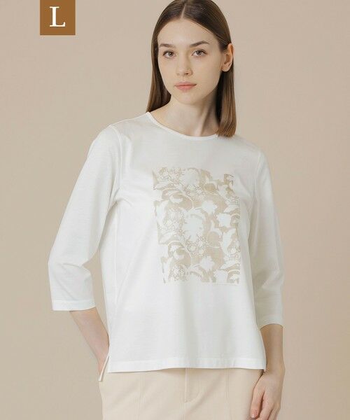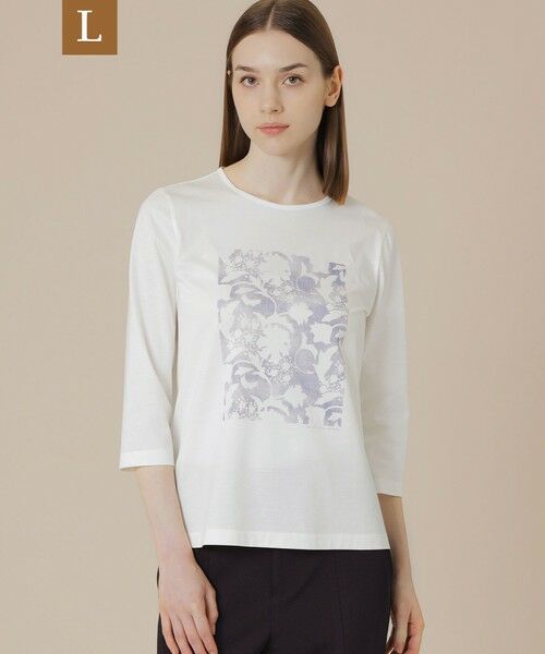 ブランドオリジナルのBIBURY FLOWER柄プリントを優しい色味を活かしながら繊細に仕上げた七分袖Tシャツです。シルエットはエレガントな印象で、コーディネートの汎用性が広く、長く着用いただけるアイテムです。