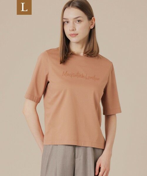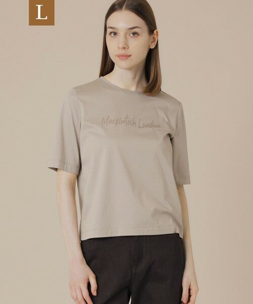 【ラージサイズアイテム】【接触冷感】【ウォッシャブル】【着用推奨シーズン:春・夏】<素材説明>肌にやさしい綿100%の素材に、シルケットバイオ加工を施し毛羽を抑え、きれいな表面感と上品な光沢感のある生地です。<機能性>接触冷感 (冷感は持続するものではありませんので予めご了承ください。)<デザインポイント>ニュアンスカラーで優しい色味を活かしながら、同系色のディープカラーでブランドシグネチャーをプリントしたTシャツです。腕はシャープに、シルエットは凛としたエレガントな印象にで仕立て、コーディネートの汎用性が広がるアイテムです。※この商品はサンプルで撮影を行っています。実際の商品とイメージ、仕様等が異なる場合がございますので予めご了承ください。