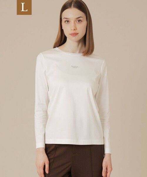 【ラージサイズアイテム】【ウォッシャブル】【着用推奨シーズン:春・秋・冬】<素材説明>厳選された超長綿をブレンドし、毛羽の少ないコンパクト紡績で原綿が持つ本来の光沢感と繊細さを最大限に引き出した素材です。※サイズについては、仕様書のサイズを記載しており、多少の誤差が出る場合がございますので予めご了承ください。<デザインポイント>胸元に小ぶりなロゴをプリントした長袖Tシャツです。白(#01)にはグレー、黒(#09)には白の配色で細いロゴをシャープで繊細に仕上げています。プリントから製品まで日本で仕立てています。この商品はサンプルで撮影を行っています。実際の商品とイメージ、仕様等が異なる場合がございますので予めご了承ください。