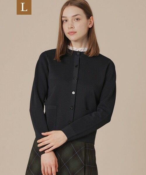 【ラージサイズアイテム】【ウォッシャブル】【着用推奨シーズン:春・秋・冬】<素材説明>アセテートとナイロンの交撚糸を使用し、微光沢のある表面感としなやかな風合いが上品な印象の素材です。<デザインポイント>衿に布帛のフリルを施したカーディガンジャケットです。エレガントな印象で、衿のフリルは外しても着用でき、コーディネートの汎用性高いアイテムです。衿のカラーはブラック(#09):白衿、ベージュ(#40):ベージュ×白ストライプとなります。※この商品はサンプルで撮影を行っています。実際の商品とイメージ、仕様等が異なる場合がございますので予めご了承ください。