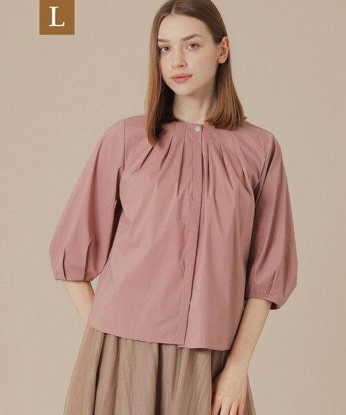 袖のタックでボリュームを出しながら、甘くなり過ぎないようクリーンに仕上げたブラウスです。ビジネスシーンやお食事会などにも活躍するきちんと感のあるアイテムです。同素材のシャツ(品番:G7M07603)もご用意しております。