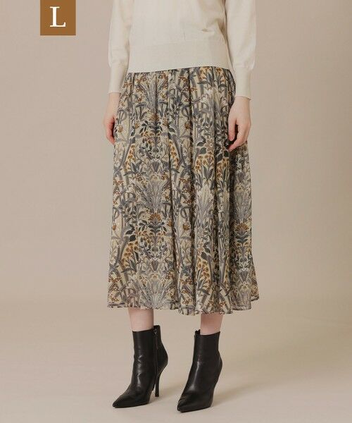 裾に向けて広がるシルエットがエレガントな印象の繊細なギャザースカートです。脇のギャザーは少なくし腰回りはスッキリとしています。同素材のブラウス(品番:G7M88694)やニットとのスタイリングにも活躍します。