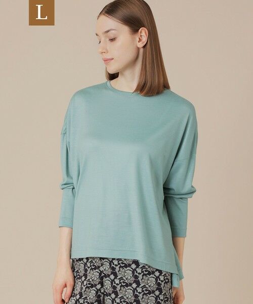 ウール本来の艶感を活かしたシンプルで上品な長袖Tシャツです。Aラインのドレープシルエットで1枚でエレガントな印象のスタイリングに仕上がります。