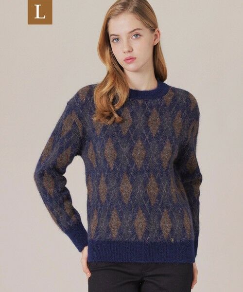 【ラージサイズアイテム】【着用推奨シーズン:秋・冬】<素材説明>ヘアリーさを際立たせたモヘヤとアルパカ混紡の素材を起毛し柔らかな風合いを出し、さらにファー加工を施した素材です。色を綺麗に馴染ませながら柔らかな風合いが出る様、国内の工場で繊細に編みたてています。<デザインポイント>柔らかな風合いを感じていただけるアーガイルニットです。軽い風合いで着心地もよくスタイリングのポイントになります。モデル:H177 B79 W60 H89 着用サイズ:38