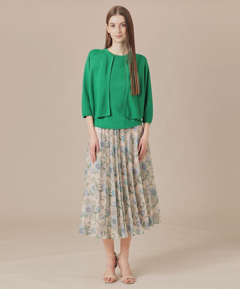 ホールガーメントならではの立体的なフォルムが特徴のボレロです。ボタンレスでミニマムなデザインは、コーディネートしやすく、さらっと軽くに羽織っていただけます。同素材のプルオーバー(品番:G5N22515)とアンサンブルで着用していただけます。
