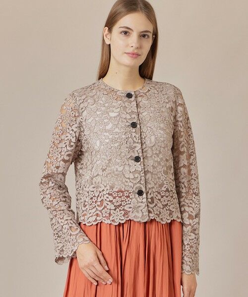 ワンピースやカットソーとパンツの上にサラッと羽織っていただけるラッセルレースジャケットです。裾に向けてやや広がるシルエットが軽やかでリラックスした雰囲気です。裏地なしです。