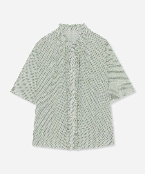 繊細なフリルがやさしい印象のブラウスです。前衿ぐりと後ヨークにたっぷりギャザーを入れ、フレアースリーブにも前後で丈に差を付けることにより肘を隠しながら腕が動かしやすくエレガントなアイテムです。同素材のワンピース(品番:G5J21569)もご用意しております。
