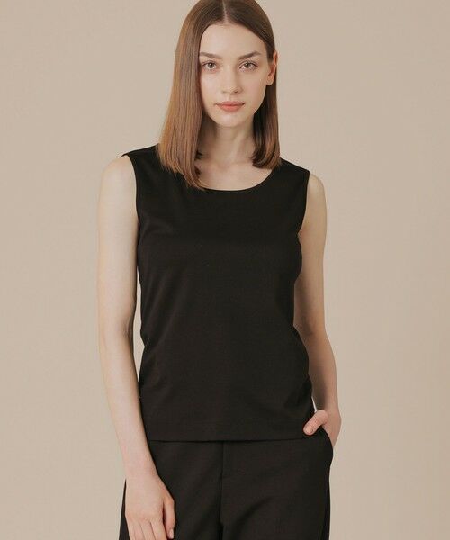 滑らかな肌触りの素材感を十分に感じていただけるタンクトップです。シャツなどに合わせやすい様、少し横に衿の開きを出し、シャツなどの第一釦を外した際に胸元が綺麗に収まる様に丁寧に作り上げたアイテムです。同素材のTシャツ(品番:G5P05665)、ワンピース(品番:G5J01665)もご用意しております。