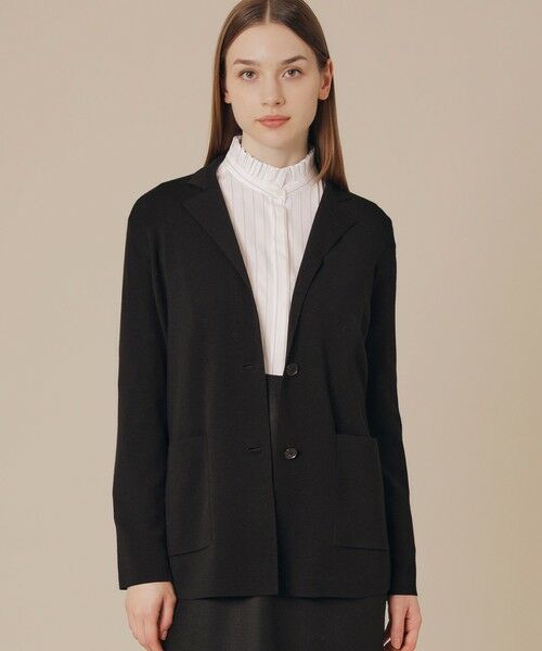 【ウォッシャブル】【着用推奨シーズン:秋・冬】<素材説明>イタリアZEGNA BARUFFA社の素材を使用しています。細番手の糸を使用し、柔らかくしなやかな肌触りと美しい光沢感が特徴です。<デザインポイント>綺麗な表面感が上品な印象のニットジャケットです。季節の変わり目の羽織りとして、ニットの着心地良さにきちんと感も備え、着回し力抜群のアイテムです。裏地なしです。同素材のタートルネックプルオーバー(品番:G5N06601)や、ブラウス、Tシャツとのコーディネートがお勧めです。※この商品はサンプルで撮影を行っています。実際の商品とイメージ、仕様が異なる場合がございますので予めご了承ください。