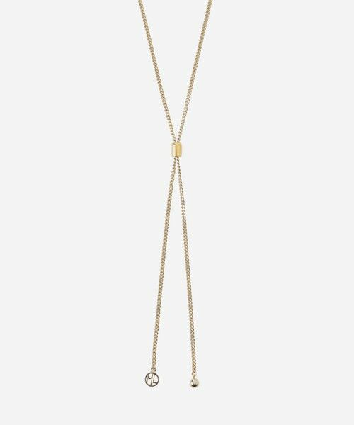 チェーンのシンプルなラリエットタイプのネックレスです。球状のアジャスター(スライドビーズ)を上下に滑らせることで簡単に長さを調節できる被るタイプのネックレスです。前後を逆にしても身に付けられます。揺れると輝き、フォーマルにもカジュアルにも合わせやすいデザインです。ニッケルフリーのメッキを施しています。※この商品はサンプルで撮影を行っています。実際の商品とイメージ、仕様が異なる場合がございますので予めご了承ください。