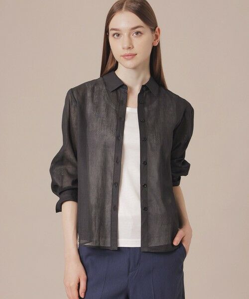 ベーシックなディテールに透け感のあるピケボイルを用いたシャープなブラウスです。フロントを留めてトラッドな着こなしや、透け感を活かしてTシャツの上にラフに羽織るのもおすすめです。
