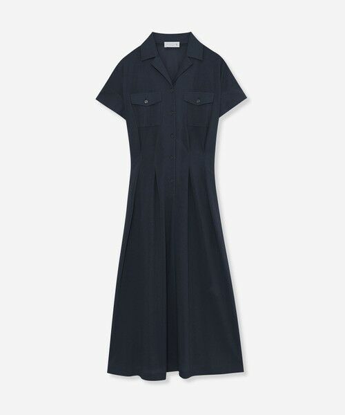 エレガントな印象のワンピースです。肩が隠れる袖丈で、シャープな衿開きは着用しやすい浅めの前下がりでアクセサリーやストールも合わせやすい様仕立てています。アンダースカート付です。