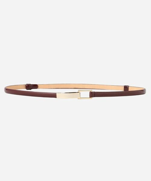 パテントレザーの艶の美しい細巾のアジャストベルトです。金具の端を押しフックをもう一方の角カンにひっかて簡単に着用できます。背後のレザーをスライドさせて自由にサイズ調節出来るので、ワンピース、スカート、パンツは勿論、アウターやストールの上からなど様々なスタイルに合わせやすい便利なベルトになっています。
