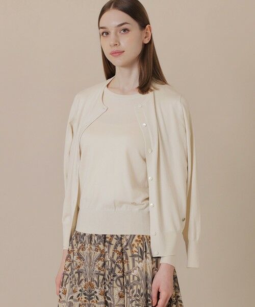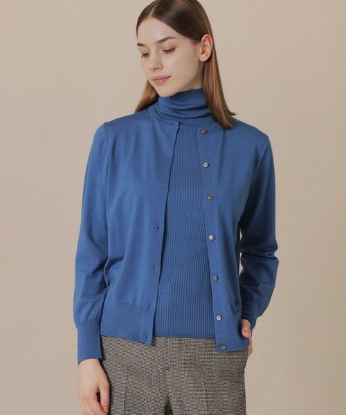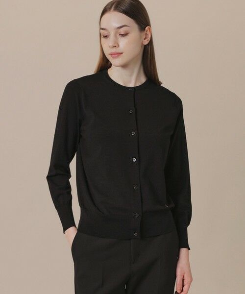 天竺組織のベーシックなクルーネックカーディガンです。前立てを見返し始末でスッキリと仕上げ、シンプルでコーディネートの汎用性が広く、また同素材のクルーネックプルオーバー(品番:G5N74685)とアンサンブルでも着用いただけます。同素材のジレ(品番:G5N78685)、リブタートルプルオーバー(品番:G5N84685)、もご用意しております。