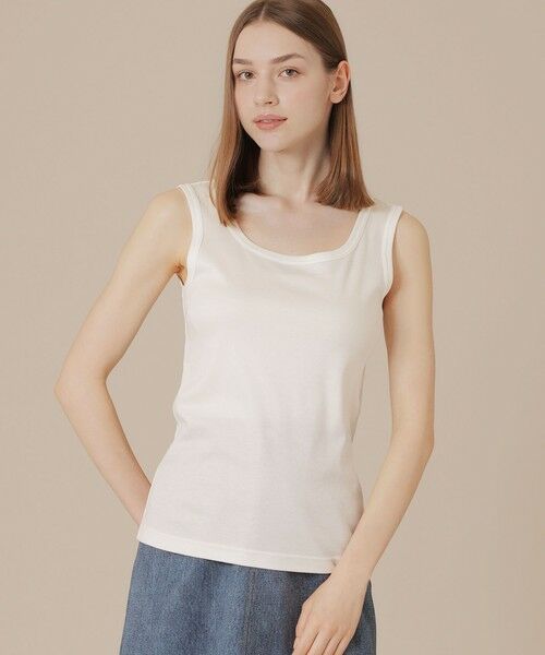 エレガントで汎用性の高いタンクトップです。肩を出来るだけ隠しながら、袖下は運動量を取り、脇の縫い目を倒す様パターンと縫製で調整し、動きやすさと着心地の良さを兼ね備えています。ブランドシグネチャーを、後ろ身頃内側に光沢のあるプリントで施し、タグの背中への肌当たりも軽減しています。