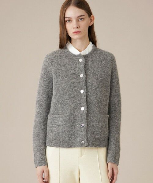 【着用推奨シーズン:秋・冬】<素材説明>アルパカとナイロンを撚糸し、起毛させた糸を使用しています。毛足が長く、軽やかでラグジュアリーな風合いと、暖かみのある素材です。<デザインポイント>金属ボタンがアクセントになったジャケットライクなニットカーディガンです。カーディガンよりも暖かみがあり、ジャケットのようなきちんと感も持ち合わせた一枚です。フロントボタンを全て閉じてプルオーバーのように着ていただくのもおすすめです。