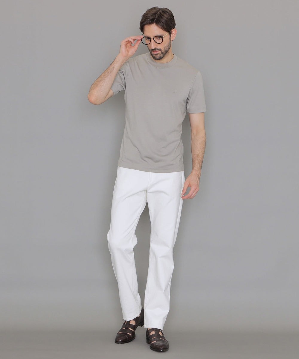「FLEX JERSEY」や「BREASY JACKET」などのセットアップシリーズにベストなインナーとして企画開発されたドレスTシャツ。ジャケットに合わせ肩回り、首、身頃を立体的に設計しており、中に着た時に無駄な余りが出ずスッキリとご着用頂けます。フライス素材で衿巾を通常のTシャツより広く設定することで、首に綺麗に沿う立体的なシルエットを表現しました。