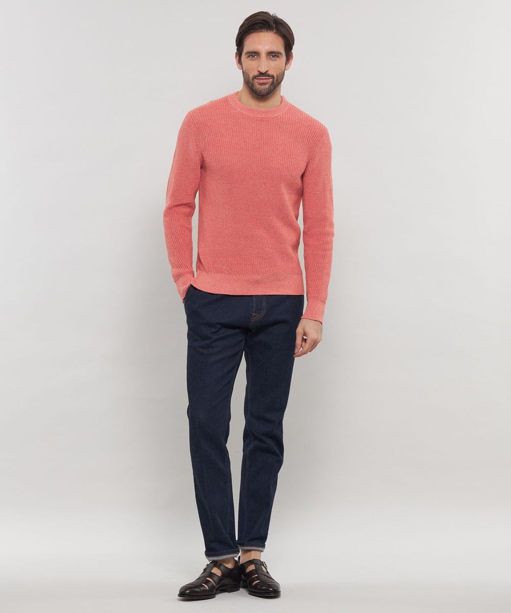 【ウォッシャブル】【着用推奨シーズン:秋・春】<素材>イタリアの上質なインポート糸を使用し、7ゲージの片畦編み程よい肉感に仕上げました。ギザコットンをシルケット加工しており、綿100%ながらシルクの様な自然な光沢感があります。糸を通常の撚糸と違いリリヤーン加工することで、畦目が立ち奥行きのある発色も特徴の素材です。<デザイン>シンプルなクルーネックのプルオーバーニットです。ざっくりとした編地で縦横共に伸縮性がある為、定番のモデルよりも少しゆったりとしたシルエットに設計しています。いつものサイズ感はもちろん、少しルーズに着用いただくのもおすすめのニットです。