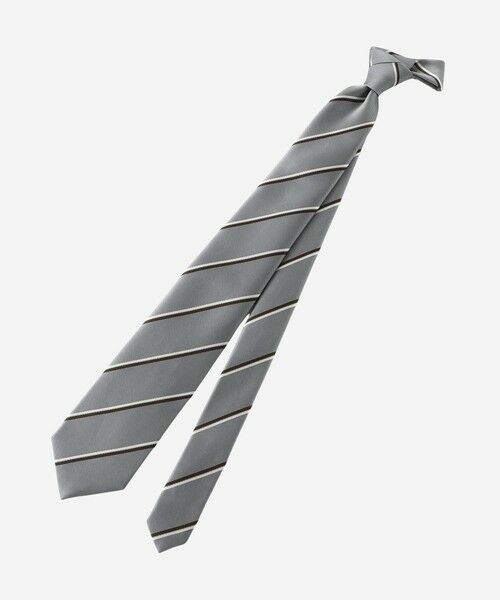 糸の風合いと光沢、発色を活かす為、敢えて扱いの難しい甘撚りの糸を使用し、低速の織機で時間をかけて織り上げたストライプです。西陣織の技術を受け継いだ丹後産地の特徴は、関東や山梨の産地に比べて半分程度の細い緯糸を多く打ち込む事で繊細な柄を表現する事ですが、この特徴はレップやサテン等、英国的な肉厚の生地を織るのに適しています。しっかりとした手持ち感の美しいレップストライプ、クラシックかつモダンな印象のストライプです。結びシワからの回復力に優れた、ウール100%のダブルクロスを芯に使用しています。