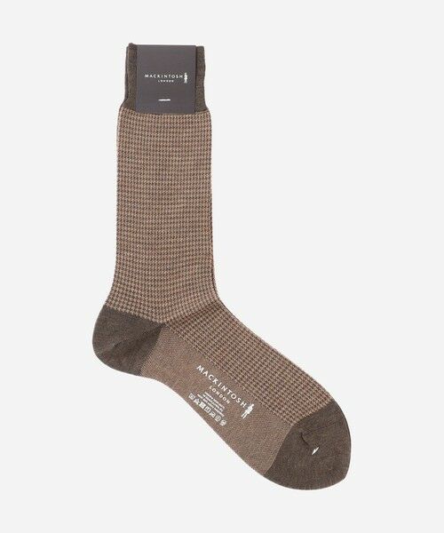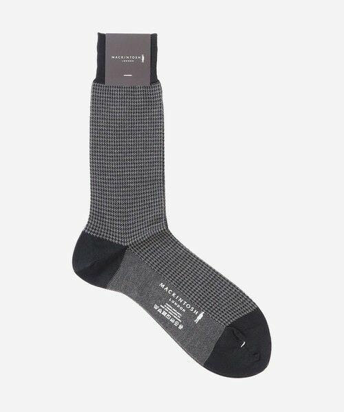 エジプト綿で作成した千鳥柄のソックスです。綿本来の上質さに加え、毛羽をガスで焼くことで、柔軟性・耐久性・色の美しさ・光沢感を備えているのが特徴です。縫製に関しての特徴は、つま先(指の付け根あたり)と本体とのつなぎ目を、編み目1目1目を職人の手作業によって縫合することで、つなぎ目がフラットで肌に当たるストレスがないことです。昨今、国内はもとより海外でも少なくなっている貴重な縫製技術となります。クラシックな柄域ででトレンドに左右されることなく、かつ履き心地にも配慮して作成された逸品となっています。