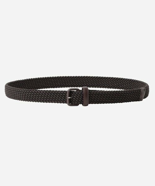 伸縮性のあるメッシュと牛革を使ったカジュアルベルトです。デニムパンツやチノパンツ等と好相性です。裏側にブランドロゴを箔押ししたタブ付きです。