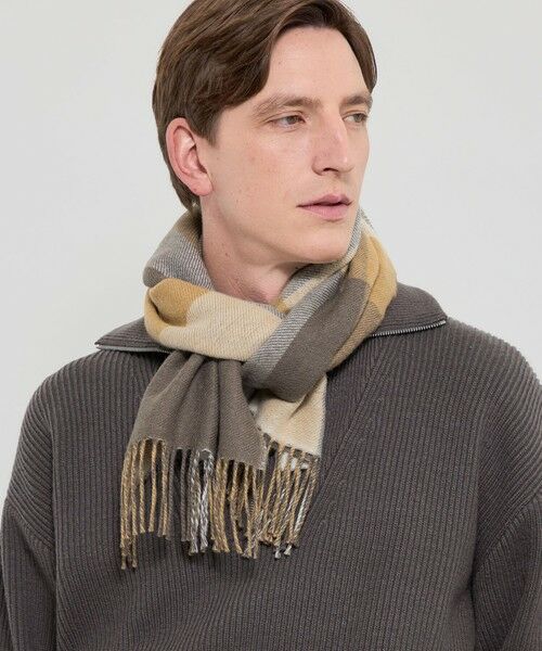 ベビーアルパカ リバーシブルパネルチェックマフラー