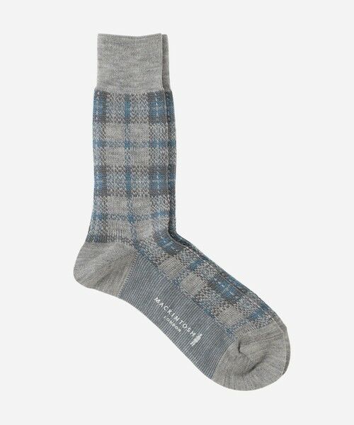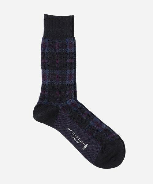 ふんわりやわからな太番手のアクリル軽量糸を、ローゲージの編み機で編んだチェック柄のカジュアルソックスです。