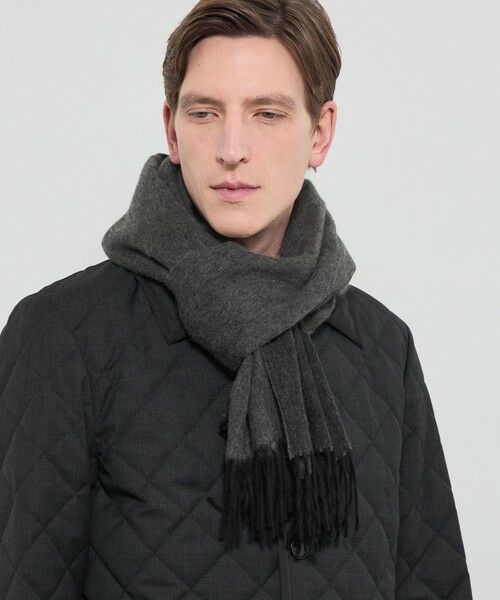 ベビーカシミヤ素材を使用。ベビーカシミヤとは、生後1年に満たない子山羊から採取される産毛のことを指し、通常のカシミヤよりさらに細い繊維径を有します。採取できるのは、冬の厳しい寒さから子山羊を守っていた産毛が自然と抜け落ちる、春から夏にかけてのごく短い期間のみで、一度に採取できる量はわずかという希少性の高い素材になります。この保温性の高さと軽さを誇るベビーカシミヤを贅沢に使ったマフラーは、まるで包み込まれるような柔らかさが最大の特徴です。