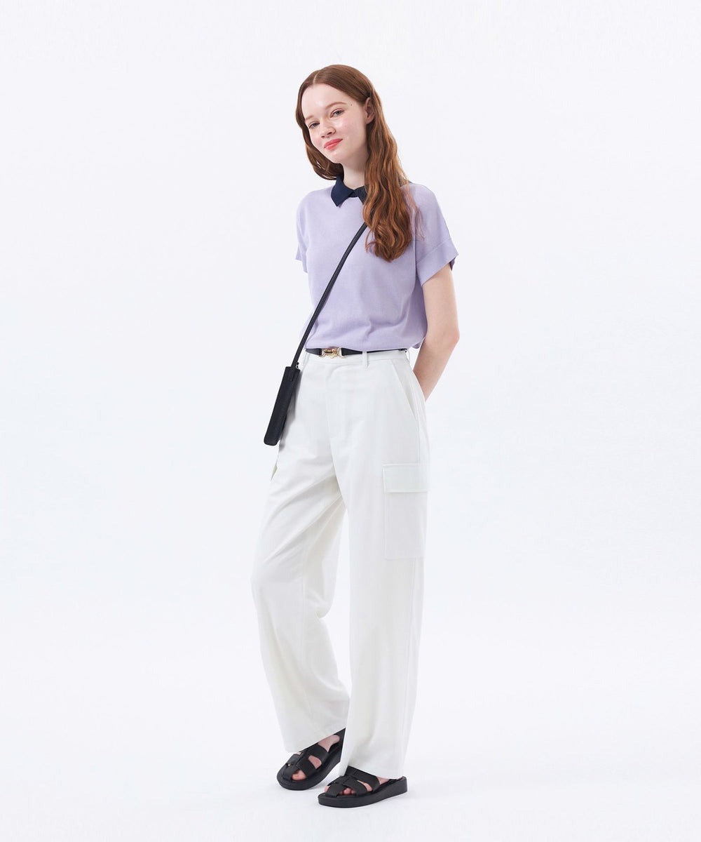 きちんと感のあるバイカラー襟のニットプルオーバー。 合わせるボトムス次第で日常使いから、お食事会やセミオケージョンシーンなど、幅広く対応可能です。 袖や裾はストレートデザインなので、締め付け感のないさらっとした着心地も魅力です。