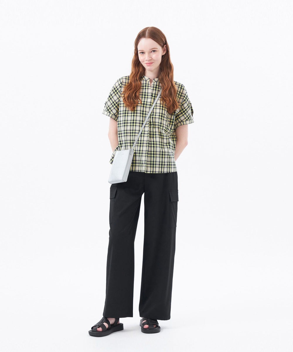 タックをあしらった立体的なスリーブが特徴のブラウス。 すっきりとした印象の中にも華やかさのある一枚です。さらっとした肌触りが、汗ばむ季節にも快適な着心地を叶えます。デイリーに使いやすいブラックウォッチ柄(29)とイエローの配色が目を惹くタータンチェック柄(60)の2色展開です。