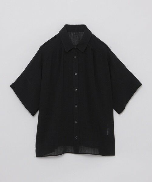 <ワイドカフスがポイントのシャツブラウス>軽い羽織りとしても着用できる、汎用性の高い前開きデザインのブラウスです。幅広のカフスは袖口を折り返して調整可能。コーディネートの幅が広がるアイテムは1枚あると便利です。【素材】ドライな質感とナチュラルな麻調の表情が特徴の素材です。トリアセテートの特徴である、ひんやり感とさらっとした肌離れの良さで、暑い時期にも快適に着用いただけます。【機能】接触冷感 / 防シワ / 吸水速乾おすすめ着用期間:春/夏/秋※34サイズはオンラインストア、ジェイアール名古屋タカシマヤ店、阪急うめだ本店、山形屋店のみでのお取扱いになります。※サイズについては、仕様書のサイズを記載しており、多少の誤差が出る場合がございます。※この商品はサンプルでの撮影を行っています。実際の商品とイメージ、仕様が異なる場合がございます。