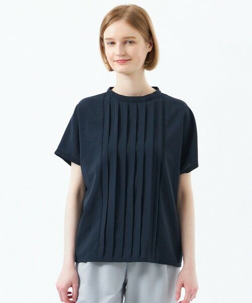 スラックスやスカートなどのキレイ目ボトムスに合わせたお仕事スタイルから、デニムパンツと合わせたカジュアルスタイルまで、着回し力は抜群です。フレンチスリーブなのでジャケットのインナーとしても、もたつかずスッキリと着用できます。