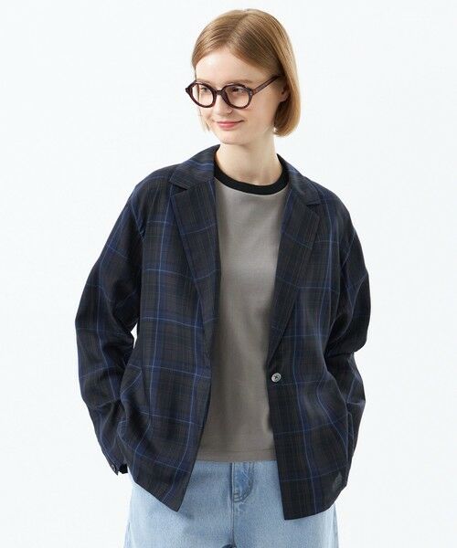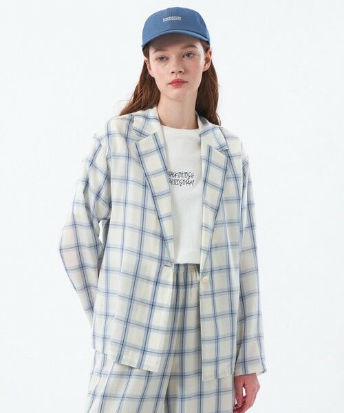 シャツ素材で軽く羽織れるテーラードジャケット。裏地のない仕様のため、ふわっと軽い着用感がポイントです。華やかなチェック柄で、一枚羽織るだけで夏のトラッドスタイルが完成します。同素材のイージーパンツ(品番:H5R18561)とのセットアップ着用も可能です。