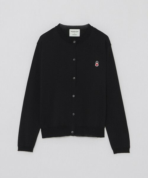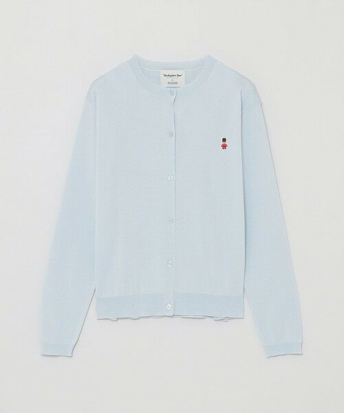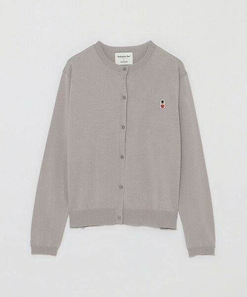 ベーシックなクルーネックカーディガンに、オリジナリティキャラクターのバッキンガムベアワッペンがワンポイント。