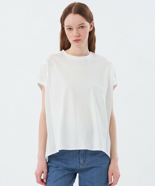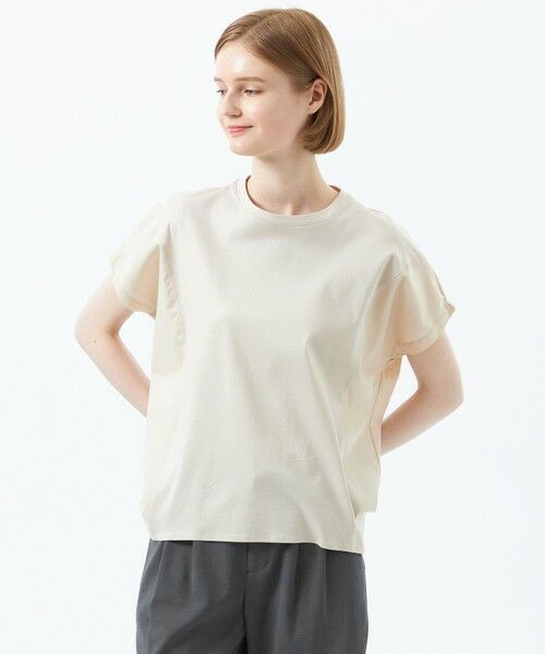 サイドの切り替えにきれいめなブロード素材を使ったデザインは、シンプルでありながらワンポイントに。一枚でも着映えが叶います。