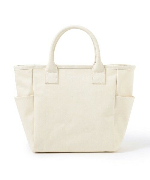 ミニマルなキャンバストート。シンプルな見た目ながら、マチが大きく、見た目以上に収納力があるのもポイント。