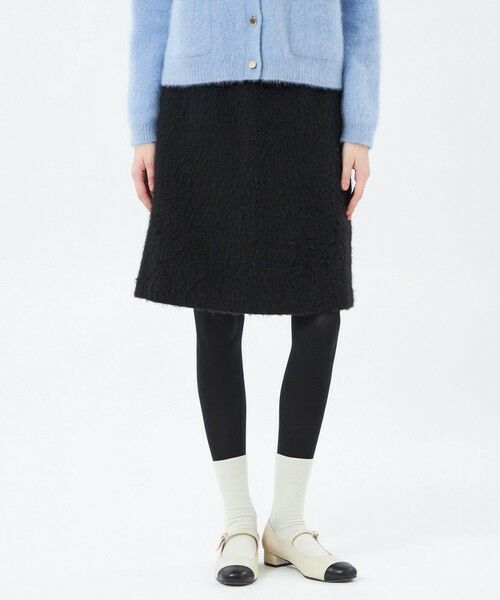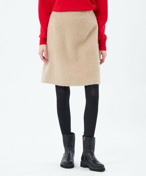 シンプルでありながらウールシャギーの上質な素材感で、一枚で華やかな印象に。コーディネートの主役になるスカートです。
