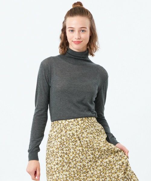 <抜け感を生むシアーなタートルニット>細番手の綿をハイゲージで編んだフィット感のあるシアータートルニット。柔らかく程よい落ち感もある素材感なので、体のラインを拾いすぎずにフィットしてくれます。薄手で使い勝手が良く、秋は一枚着としてヘルシーに着こなしたり、冬から春先はニットやシャツのインナーとしても活躍。コンパクトコットンならではのなめらかさと、さらっとした着心地の良さが特徴です。【素材】コンパクトコットンのセミハイツイスト糸を使用しています。毛羽が少なクリアな表面感がポイント。おすすめ着用期間:春/秋/冬※この商品はサンプルでの撮影を行っています。実際の商品とイメージ、仕様が異なる場合がございます。