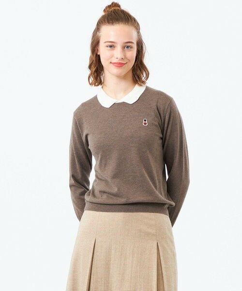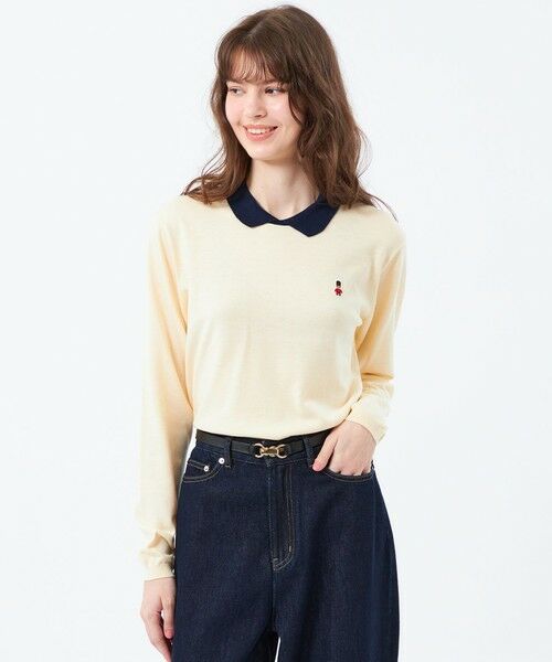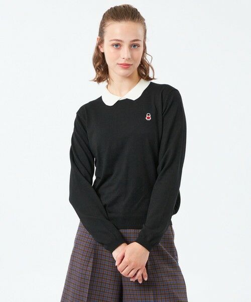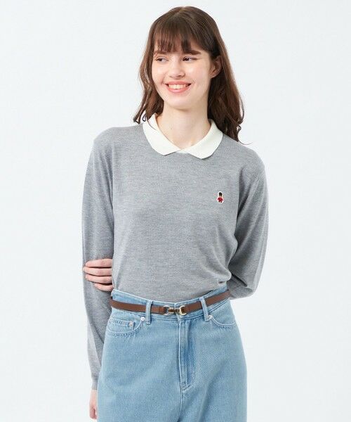 <バッキンガムベアワッペンの襟付きニット>BUCKINGHAM BEARのワッペンがワンポイントのバイカラーポロ襟ニット。襟部分の配色でディティールが際立ちます。ボディはきちんと見えのセットイン。ハイゲージならではの滑らかさとストレッチ性でミニマルな印象です。<BUCKINGHAM BEAR>ロンドンのシンボル、バッキンガム宮殿を衛る熊の衛兵、バッキンガムベア。AMAT VICTORIA CURAMが彼らの掟。【素材】半紡という紡績方法で作った素材です。複数の原料を細く紡績することが可能な方法です。素材が柔らかく薄い編地が可能で、合繊とウールを組み合わせることで柔らかく、温かいのが特徴です。おすすめ着用期間:秋/冬※この商品はサンプルでの撮影を行っています。実際の商品とイメージ、仕様が異なる場合がございます。こちらの商品は一部店舗とオンラインストア限定商品です。 WEB限定商品は、予告なく一部店舗で展開される場合もございます。