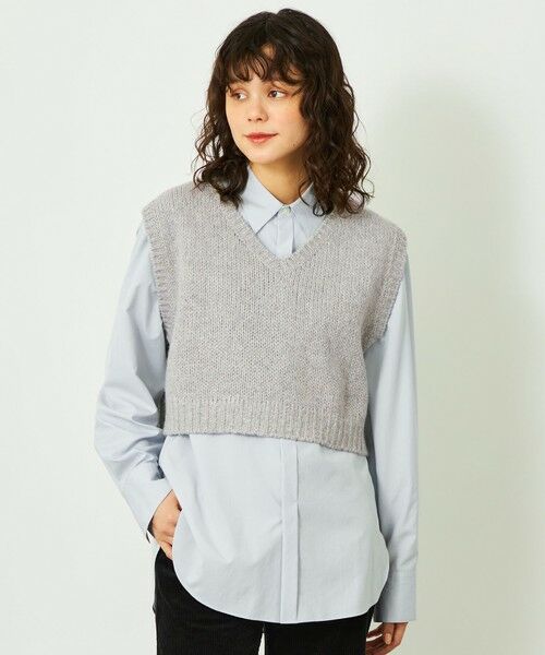トレンド感のある深Vネックのローゲージショートベスト。ゆとりのある身幅に広く開いたアームホールなので、重ね着もストレスなく楽しめる1枚です。