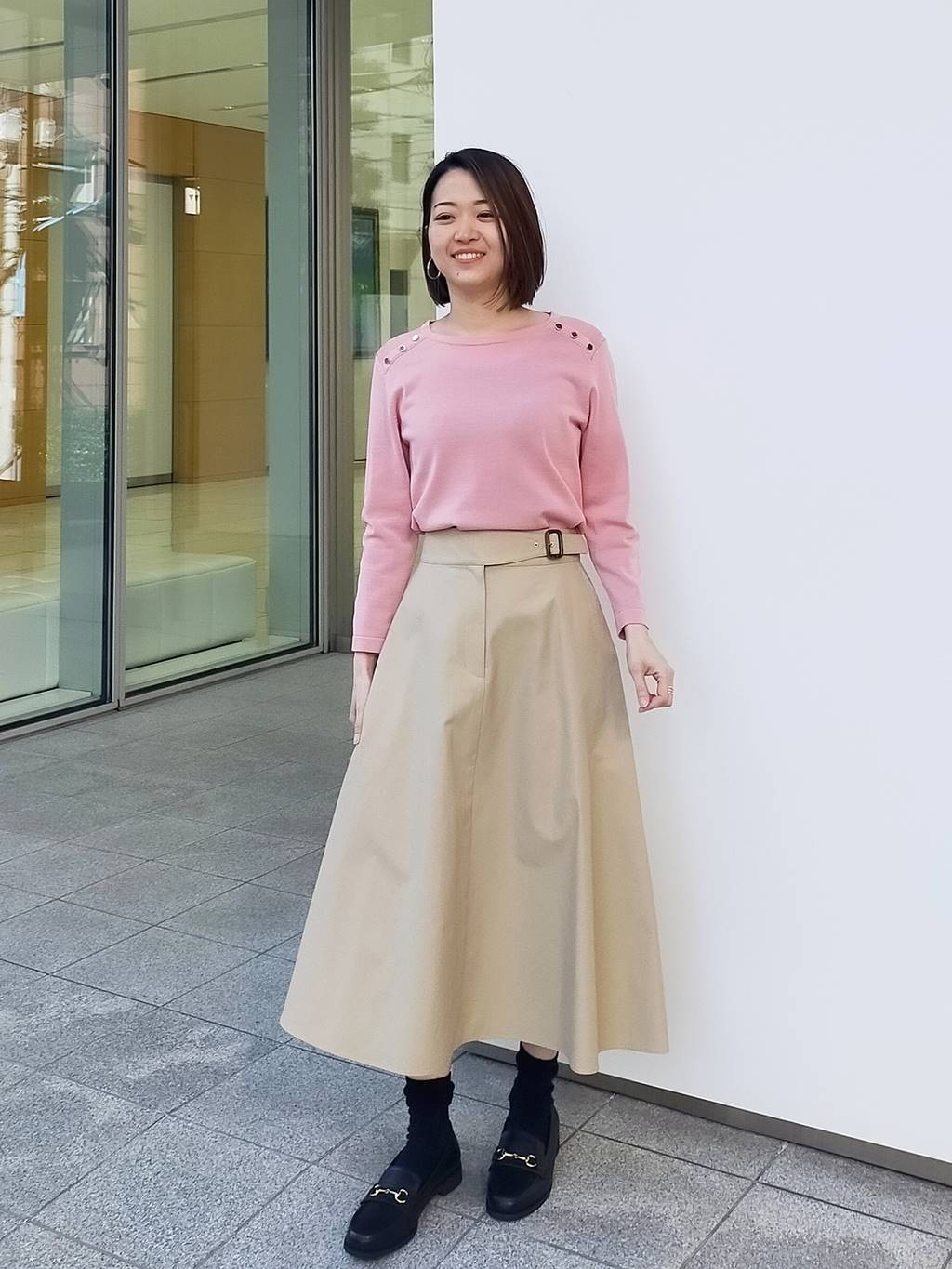 "【トップス】 肩部分のゴールド釦が一枚で着映えるニットプルオーバーです。シンプルなデザインなので、きれいめなボトムスと合わせてお仕事用にも◎デニムやチノと合わせてカジュアルスタイリングにも◎ 【ボトムス】 ウエストベルトのデザインが上品すぎない印象で、ニットやブラウス合わせはもちろん、Tシャツやスウェットなどのカジュアルなアイテムとのあわせもおすすめです!"
