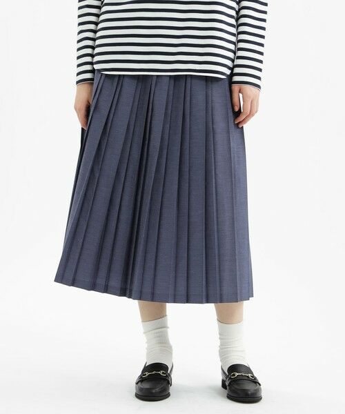 <親子プリーツの表情が華やかなミディ丈スカート>