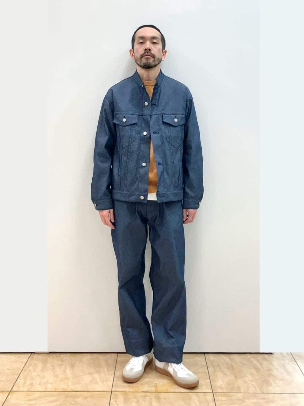 大人カジュアルのデニムを。 と考えている方にお薦めしたいのがこのデニムセットアップです。 厳密にはインディゴ染めのデニムではなく、ポリエステル糸をデニムの様に織ったポリエステルデニムです。 ジャケットは筒袖も見頃もゆったりなリラックスシルエット、パンツはワイドストレートとトレンドのエッセンスをほんのり香らせたアイテムに仕上がっています。【モデル身長:172cm】