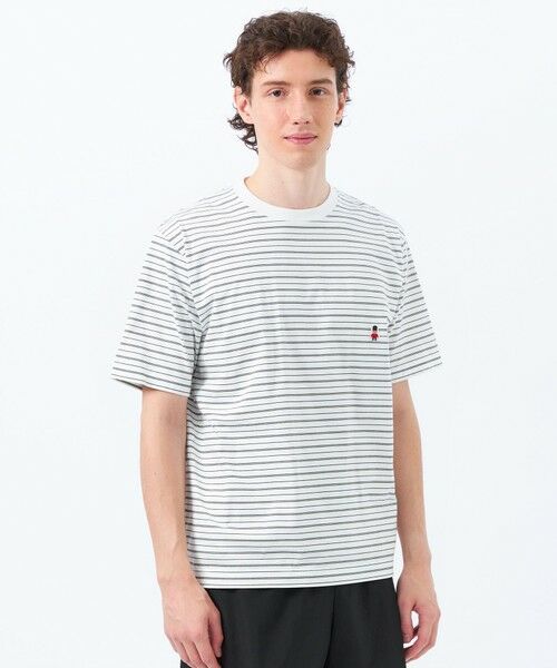 レギュラーフィットのクルーネックデザインのTシャツです。ランダムボーダーの柄にBEARのワッペンがデザインポイントで一枚着としてはもちろんインナーとしても重宝します。
