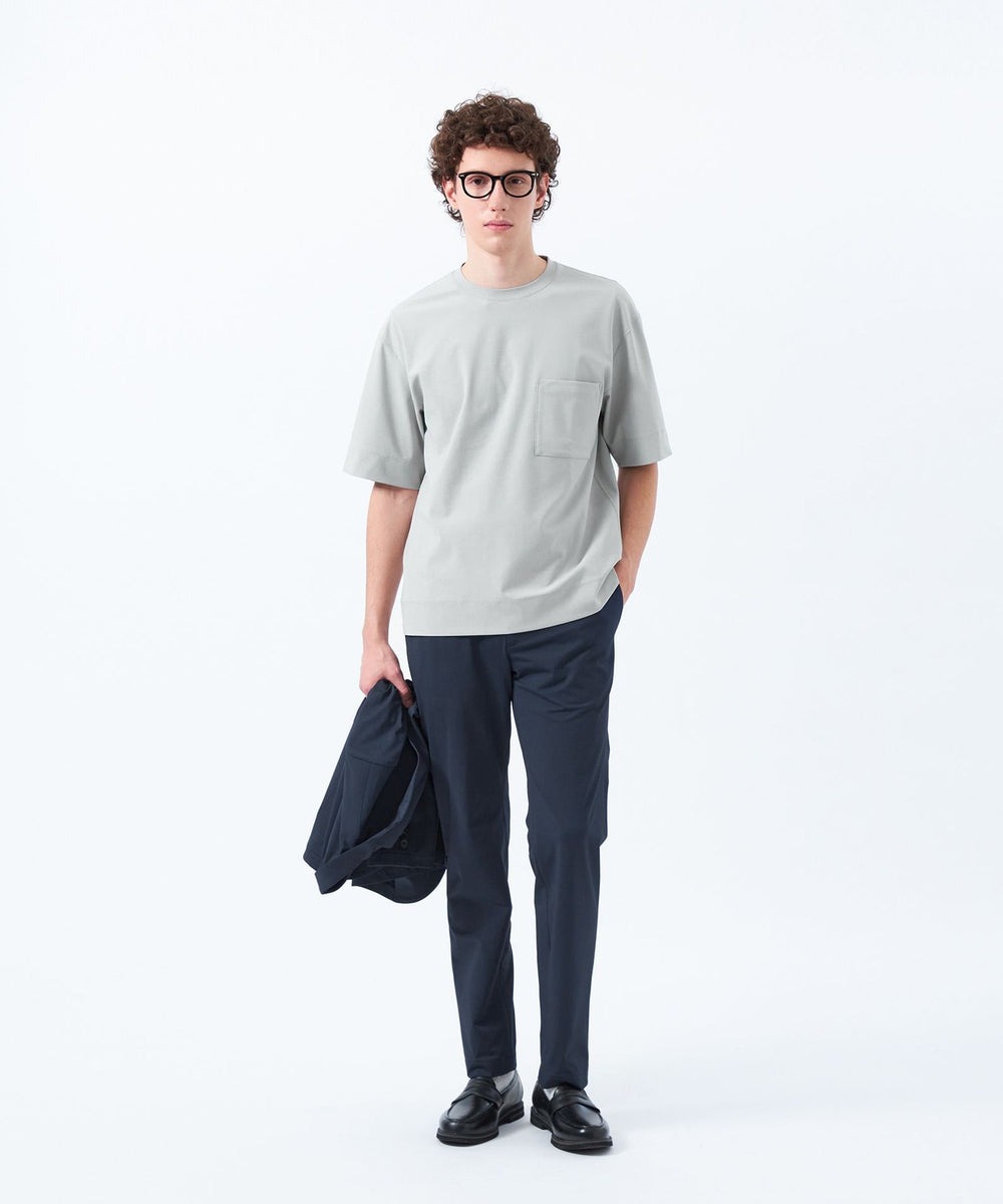 360°全方位に驚きのストレッチ性を持つドライフラットストレッチクロス。ハリ感のある素材で、美しいシルエットを作り出します。自然なシワ感を持たせる加工を施し、コーディネートに取り入れやすい素材にしました。