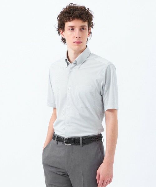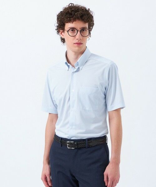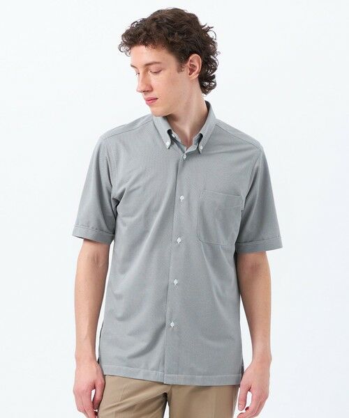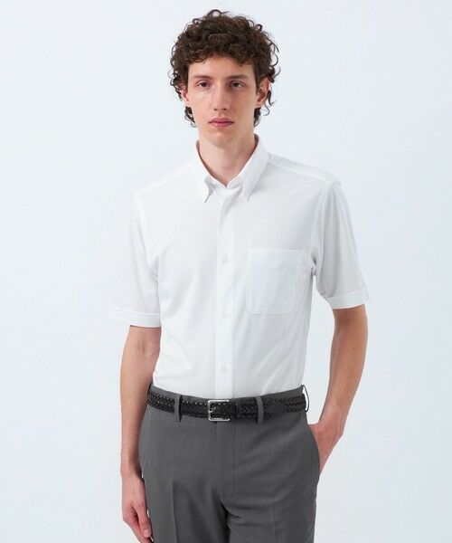 ビジカジ兼用でスタイルを問わずに着用いただけるスクエアカットの半袖ボタンダウンシャツ。衿先の自然なロール感をきれいに出し、着用時の立体感が首回りをすっきり見せてくれます。後身にダーツがあり、ウェストを程よくシェイプさせ、体のラインをきれいに見せてくれるシルエットも特長。スクエアカットの裾で、綿パンツ合わせなどパンツアウトスタイルでも着用しやすいデザインです。後襟ぐり、脇下部分には消臭機能のあるテープを縫い込んでおり、気になる臭いを抑えてくれます。