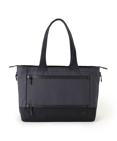 通勤から出張まで活躍するトートバッグ通勤から出張まで使いやすいトートバッグは、マチ部分にジップポケット付きでデザイン性と機能性を併せ持ちます。シンプルなデザインながら、小物雑貨が収納可能な内装ポケットと多様な収納スペースを備えています。サイズ感は14インチノートPCが収納可能で収納量は約15Lとデイリーユースとして使い勝手の良いサイズ感です。※この商品はサンプルでの撮影を行っています。実際の商品とイメージ、仕様が異なる場合がございます。