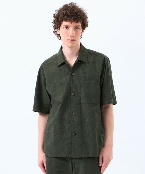 【デザイン】羽織りとしても使えるややゆったりとしたサイズ感のオープンカラーシャツ。ショートパンツ合わせなど夏らしいリゾートスタイルがおすすめです。襟は程よい大きさに設定し、第一釦を留めて着ても収まりが良く、ボックスシルエットでモダンなバランスに仕上げています。