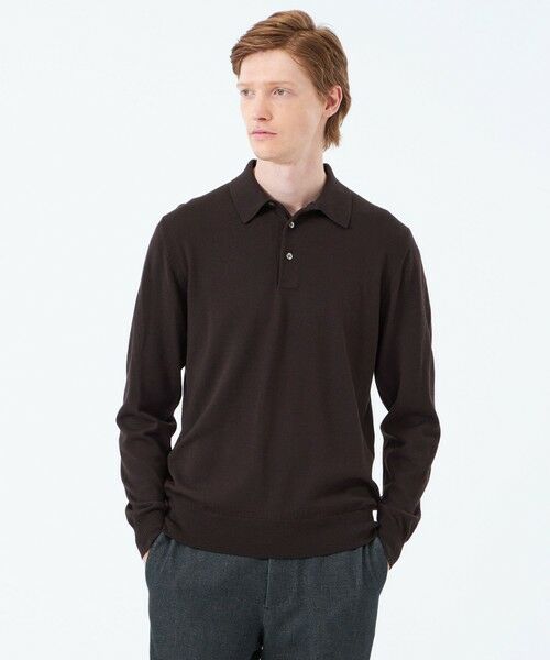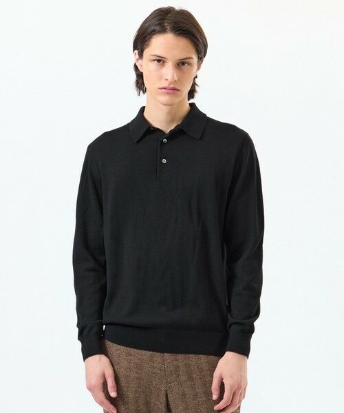 クラシックな装いと大人の雰囲気を醸し出すニットポロ。一枚襟ながら台襟にあたる部分をミラノリブ編みにすることにより、襟立ちが良いためジャケットとの相性も抜群です。ニット特有の上品な素材感が絶妙なヌケ感を演出するため、一枚で着てもオシャレに見えます。